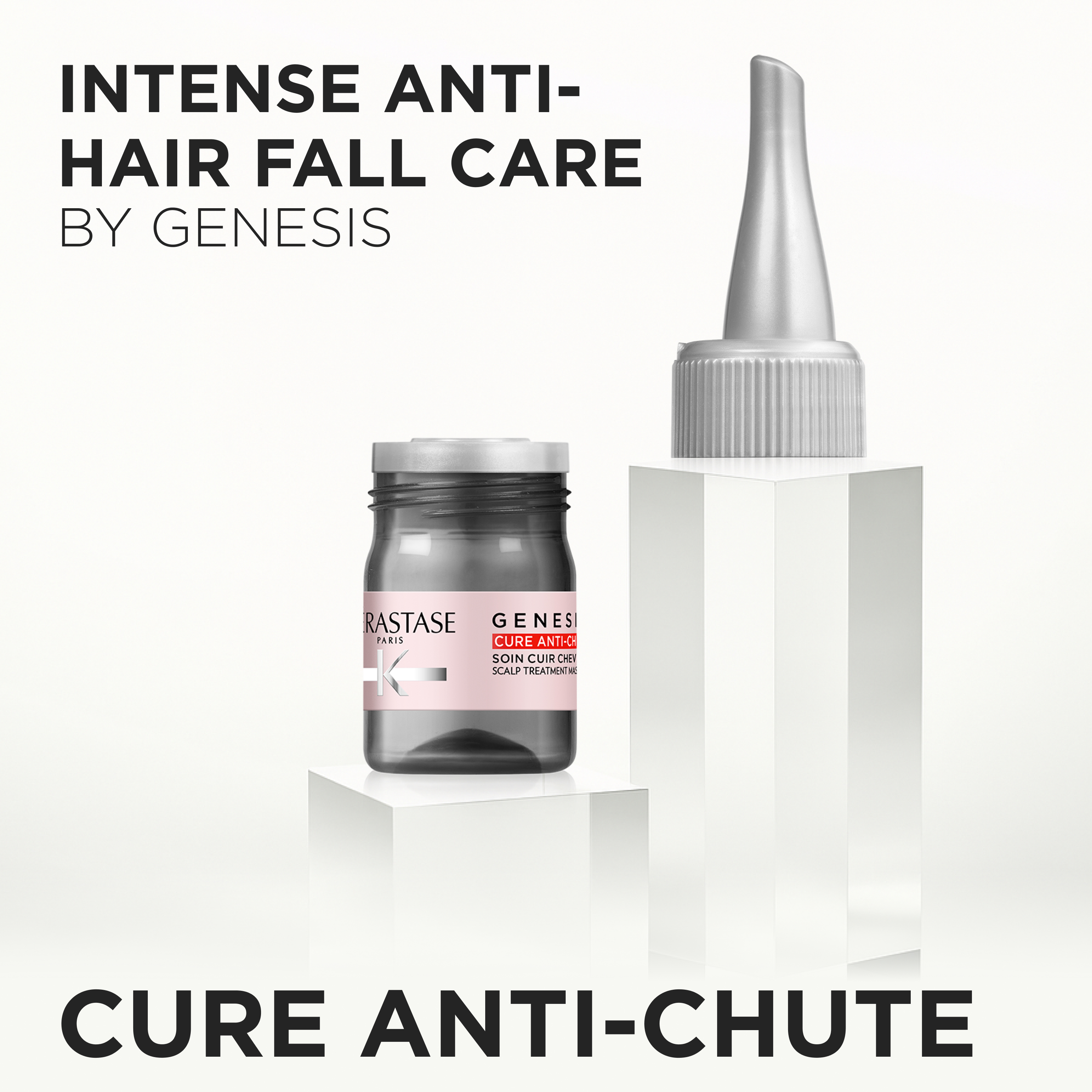 Anti hair-fall fortifying treatment for weakened hair, prone to falling. Containing our unique precision blend of ingredients, the shot acts to intensely reduce hair-fall and maximize beautiful hair. During peaks of hair-fall, the jelly like formula re-anchors the hair follicle into the scalp while providing optimal environment for future growth. The formula sooths and decreases itchiness by reinforcing the natural protective barrier of the scalp.