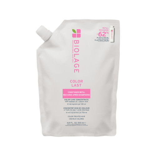 Nourish your color. Refill your shine. The Matrix Biolage Color Last Conditioner Refill delivers the same salon-quality results in an eco-conscious format. Specially formulated for color-treated hair, this pH-balanced conditioner is infused with antioxidant-rich soybean oil and moisture-sealing stearic acid to protect against fading while enhancing softness and shine.