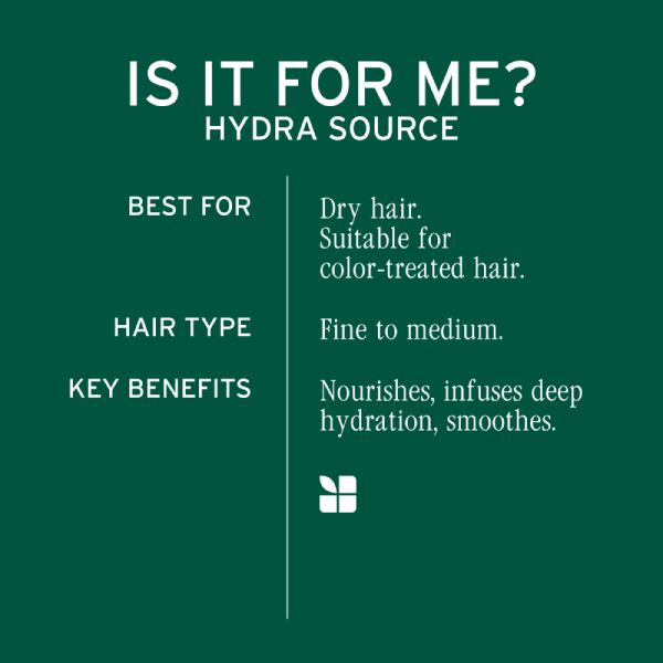 Revive your hair’s thirst with intense hydration. The Matrix Biolage Hydra Source Deep Treatment Mask is an ultra-nourishing treatment designed for dry, dehydrated hair. Infused with aloe vera and fermented hyaluronic acid, this rich formula penetrates the hair fiber to deliver deep moisture, smoothness, and strength where it’s needed most.