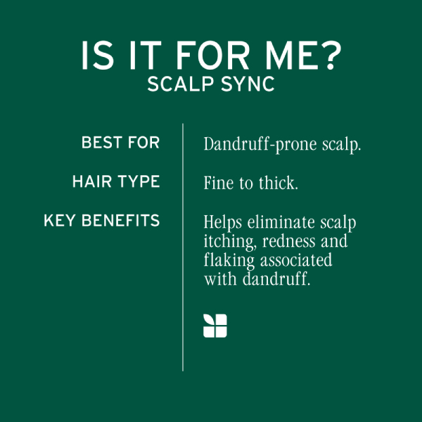 Matrix Biolage Scalp Sync Anti-Dandruff Shampoo is a targeted scalp cleanser that relieves itching, flaking, and irritation while promoting a healthier scalp environment. Formulated with zinc pyrithione to combat visible dandruff and a fermented tea blend plus glycolic acid to gently exfoliate, this shampoo removes buildup and rebalances the scalp microbiome. Experience flake-free, refreshed results for up to 72 hours. Gentle enough for daily use and color-treated hair.