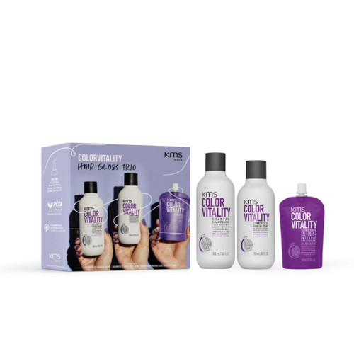 - KMS Colour Vitality Conditioner (200ml): Restores moisture and shine while preserving colour for up to 3x longer*. With UV filters, Lilac and Ginger, it strengthens and protects from environmental stressors.